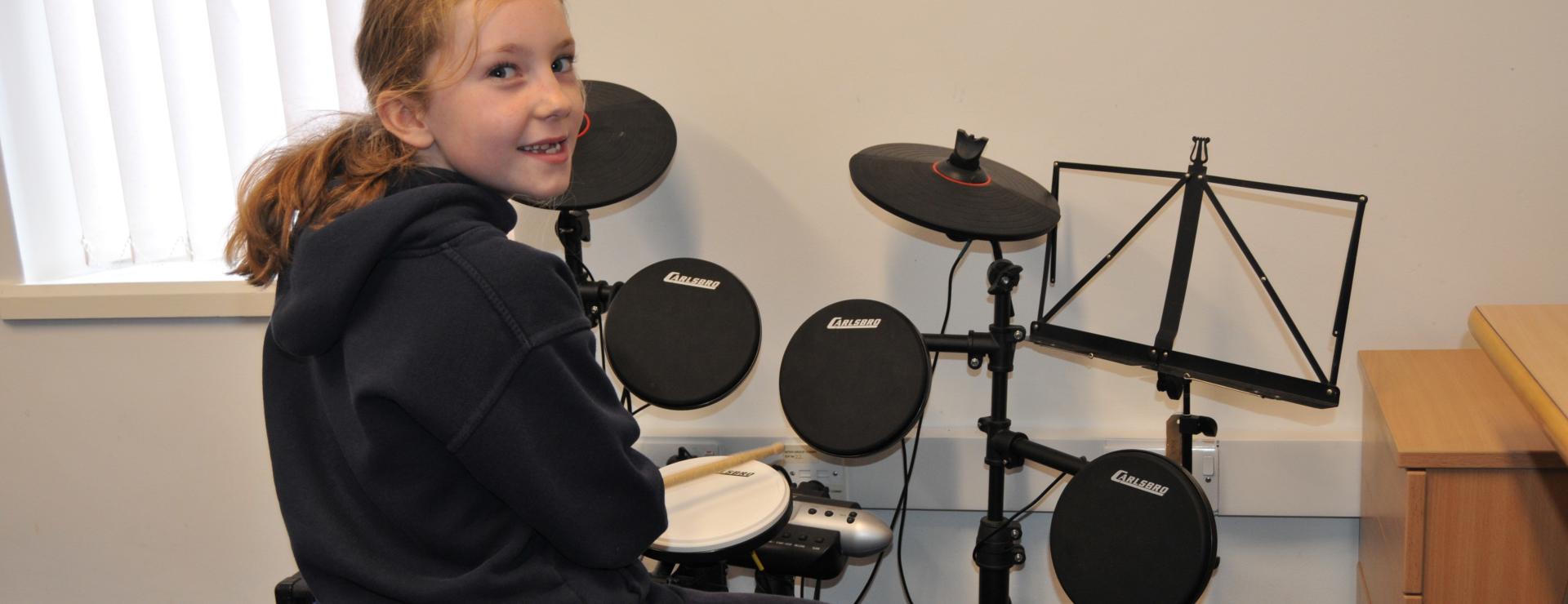 Children have many opportunities to learn to play a range of instruments including many hand-held classroom percussion instruments and glockenspiels.